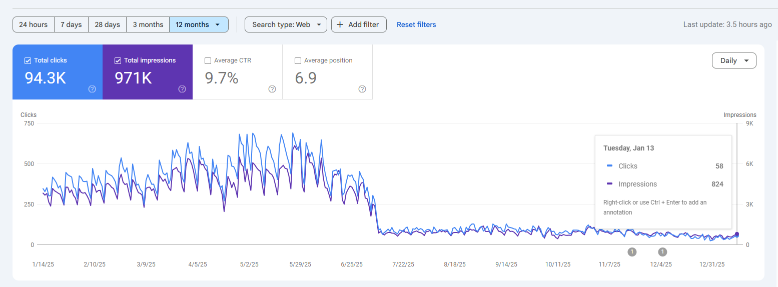Imam nekih retardiranih grešaka u search console koje pokušavam riješiti, i za dva tri mjeseca očekujem barem 50% povrat posjete ![]()